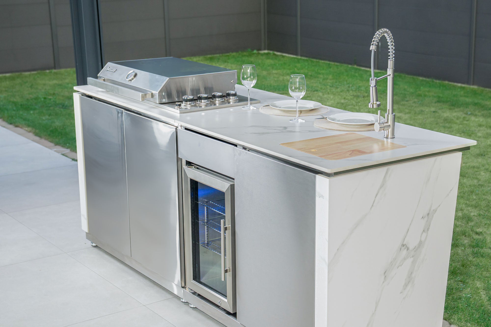 Edles Design mit weißer Marmoroptik trifft auf präzise Grilltechnik und perfekte Funktion.