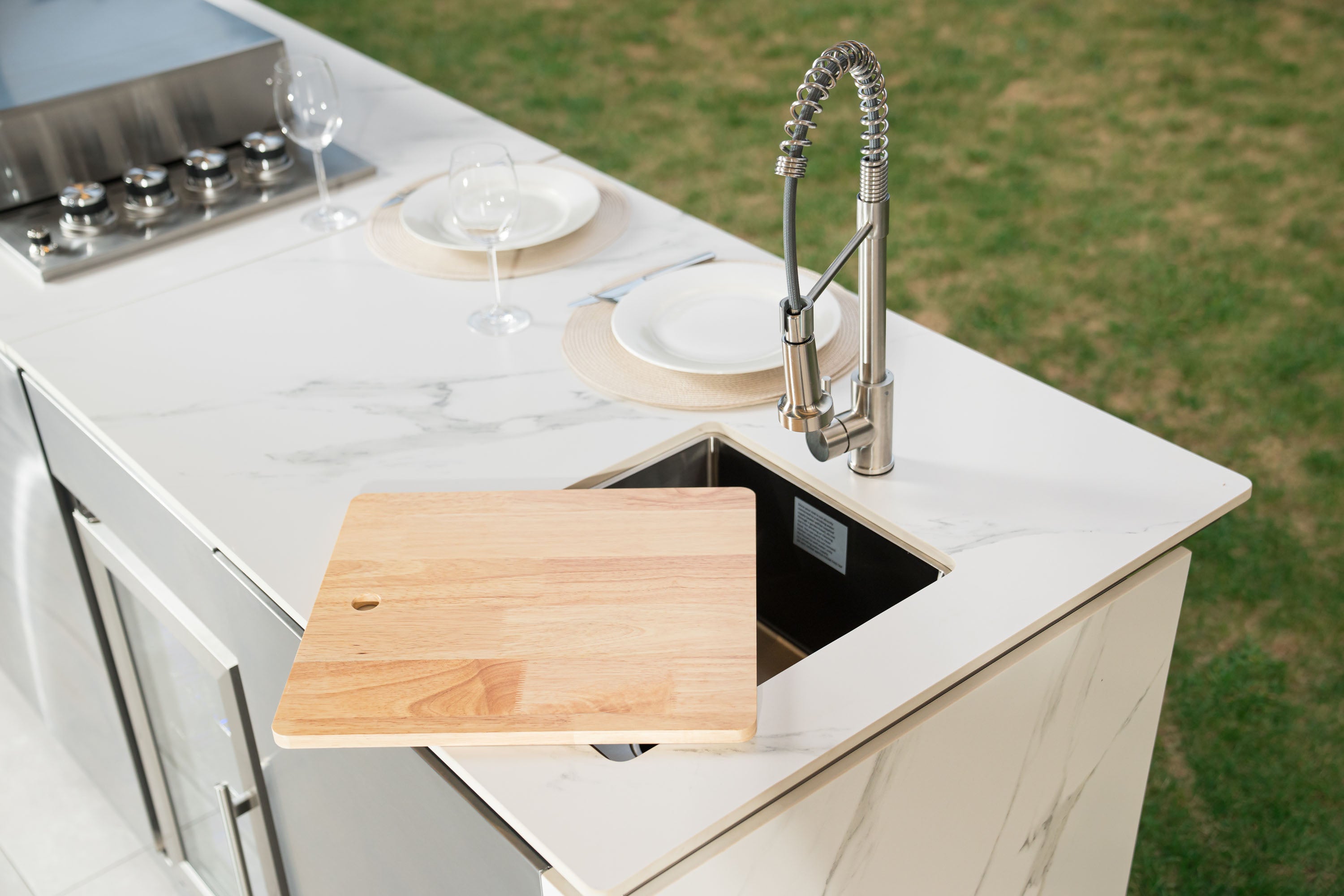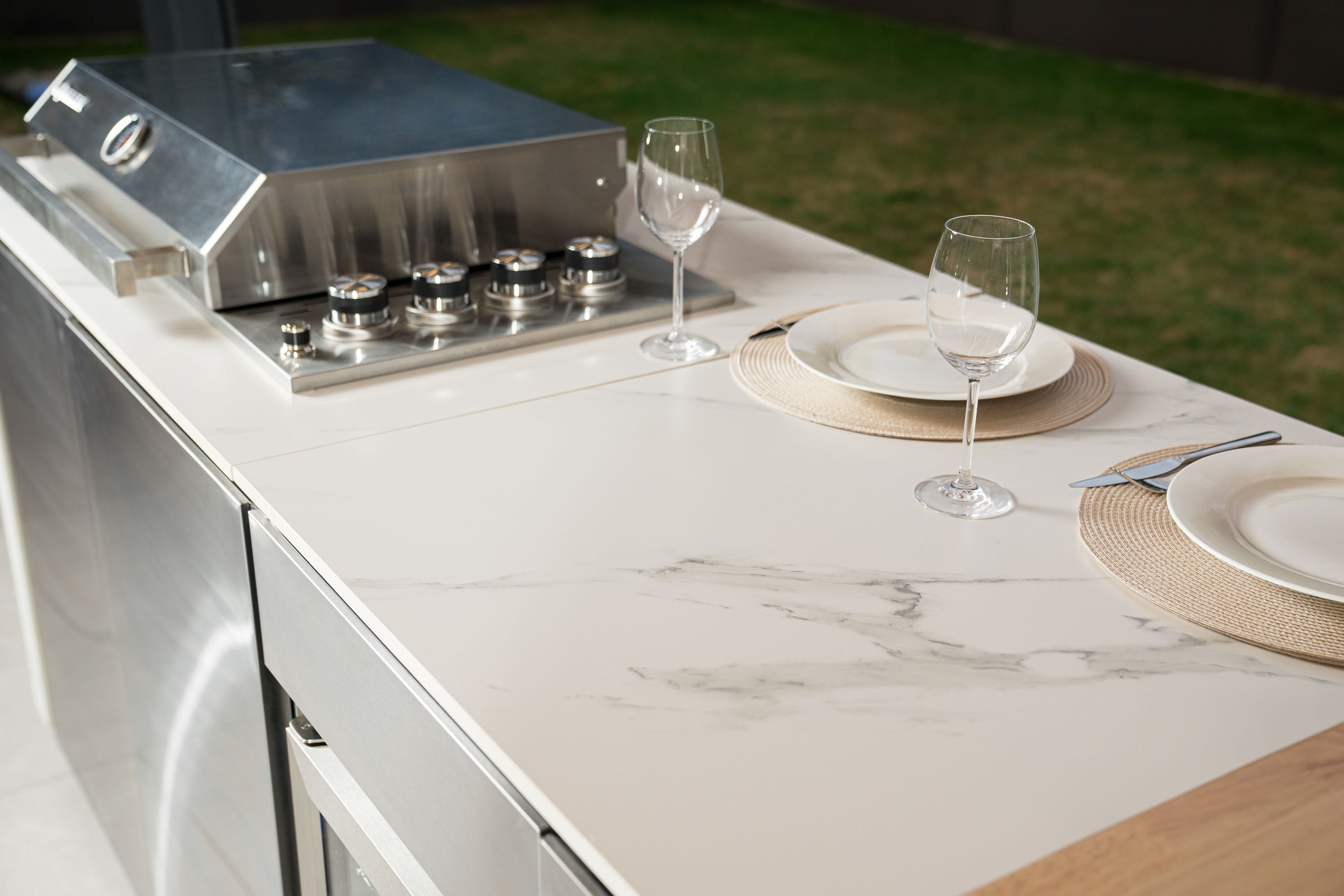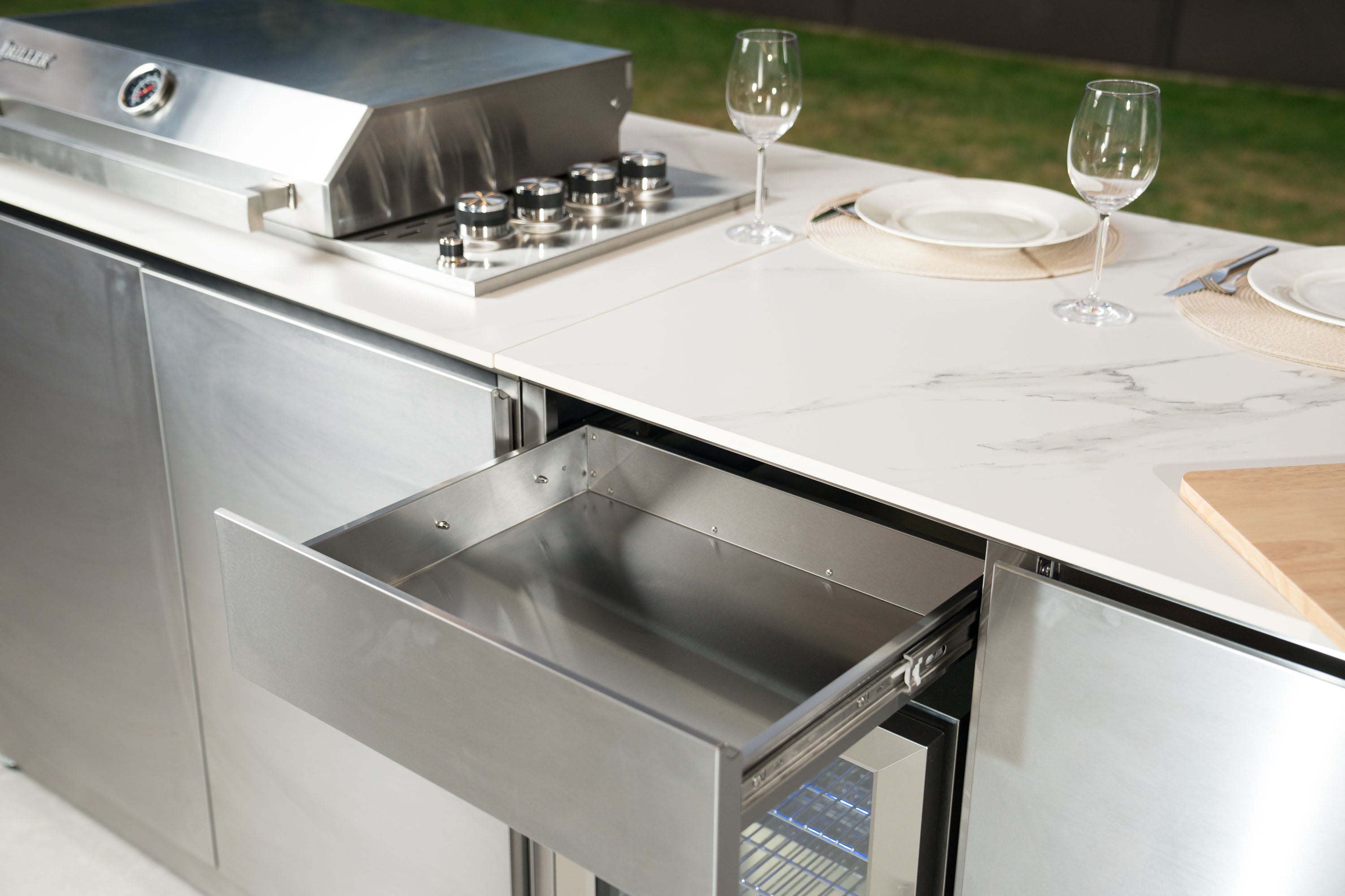 Ya sea una cena para dos o una fiesta en el jardín para diez, nuestro sistema se adapta. Se acabaron las idas y venidas entre la cocina y el patio: ahora tiene total libertad para preparar sus comidas al aire libre.