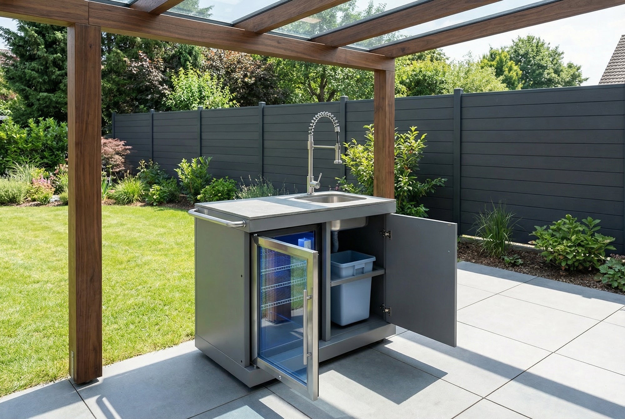 Mit 63 Litern Kühlvolumen hast du genug Platz für bis zu 10 Weinflaschen, Grillgut oder frischen Beilagen, konstant gekühlt zwischen 3-18°C. Im tiefen, rostfreien Spülbecken kannst du Lebensmittel waschen, Teller spülen oder Grillroste reinigen und nach dem Grillabend ist in Sekunden alles blitzblank gewischt. Der integrierte, ausziehbare Abfalleimer hält deinen Arbeitsplatz aufgeräumt und einladend, auch nach einem langen Abend.