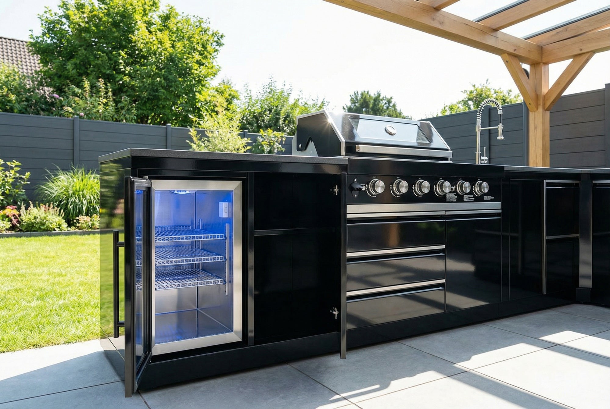 Eine Outdoorküche, ganz nach deiner Vorstellung. Die BB-XL2 kommt in voller Austattung und bietet dir mit dem CORNER Modul eine elegante Ecklösung, um den Aufbau frei zu bestimmen. Hier macht dir keiner was vor.