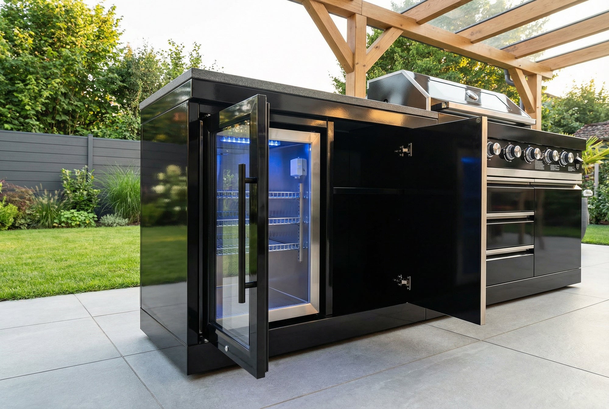 Mit 63 Litern Kühlvolumen hast du genug Platz für mehrere große und kleine Flaschen, Grillgut und frische Beilagen – kein Hin- und Herlaufen mehr zwischen Außen- und Innenküche. Sechs Kühlstufen halten die Temperatur präzise zwischen 3–18°C, egal ob Sommerhitze oder Abendkühle. Und das integrierte Türschloss sorgt dafür, dass Getränke und Vorräte sicher verstaut bleiben, damit du dich ganz aufs Grillen und deine Gäste konzentrieren kannst.